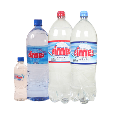 Agua en botellas de 500cc y 2 litros.